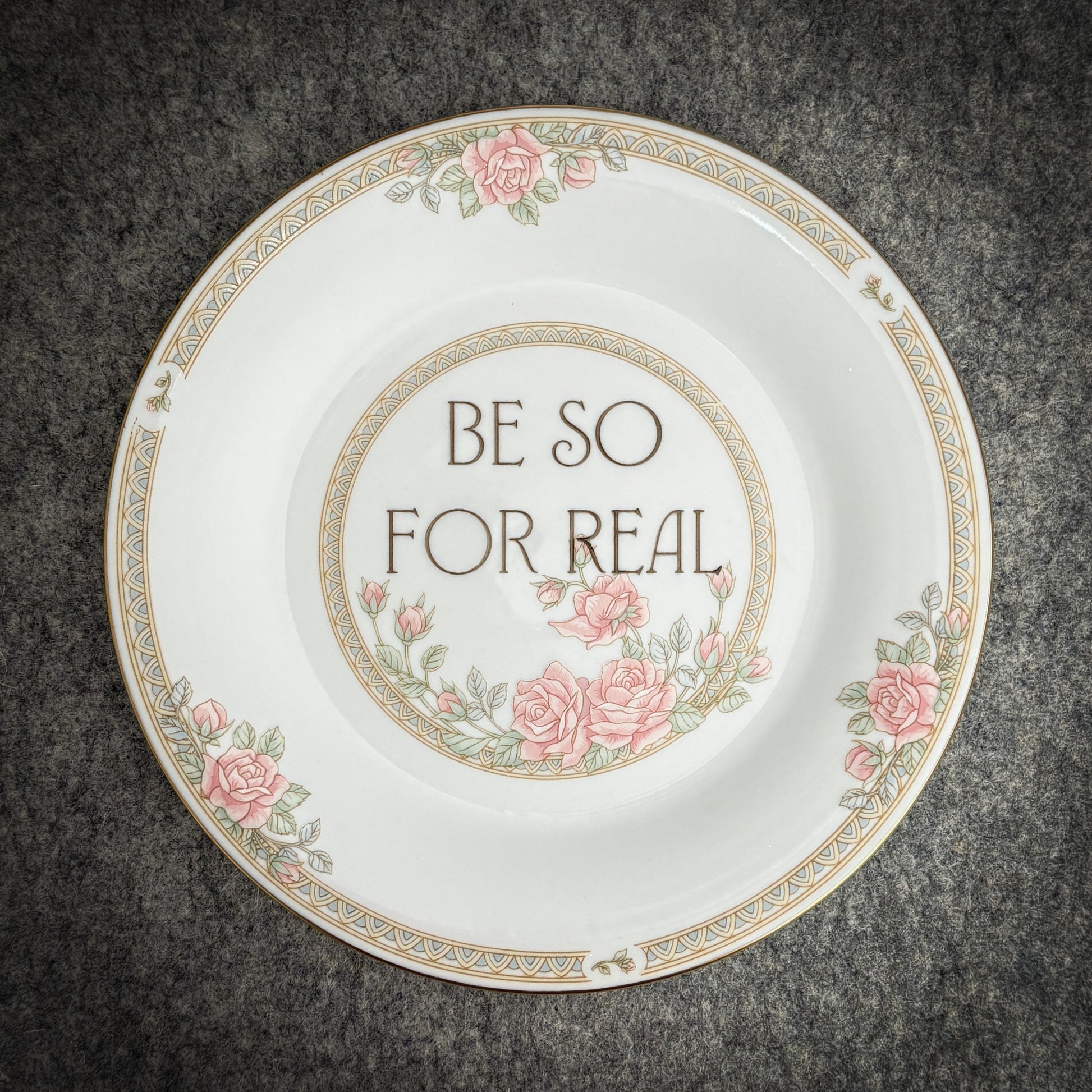 This is a used plate we’ve rescued, rehabbed, and reimagined into fabulous wall-worthy art for your home. It’s here to say what you’re thinking, without you having to say it out loud.