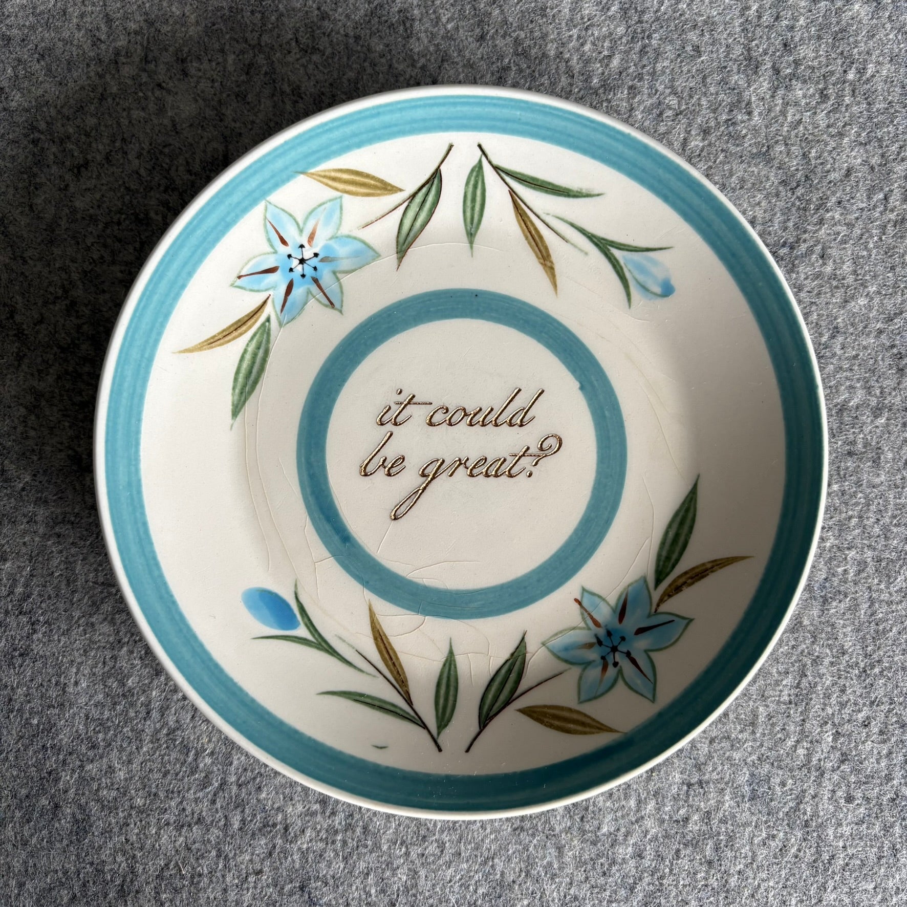 This is a used plate we’ve rescued, rehabbed, and reimagined into fabulous wall-worthy art for your home. It’s here to say what you’re thinking, without you having to say it out loud.