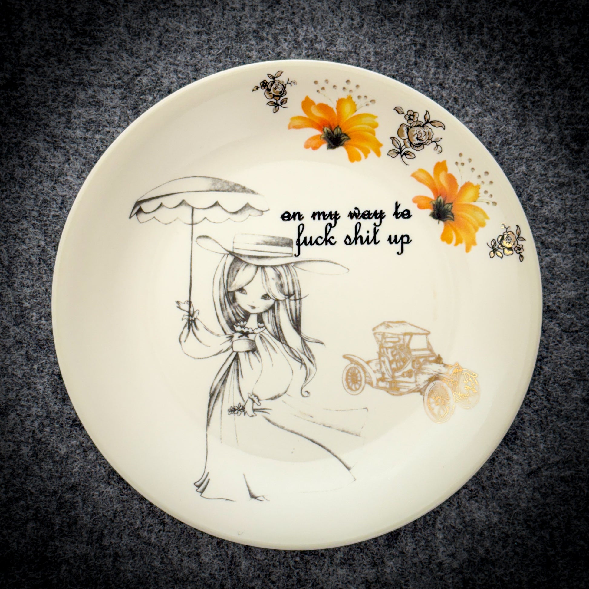 This is a used plate we’ve rescued, rehabbed, and reimagined into fabulous wall-worthy art for your home. It’s here to say what you’re thinking, without you having to say it out loud.