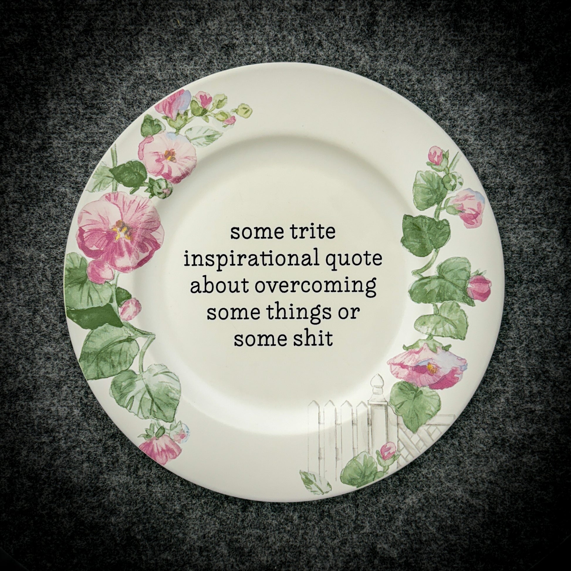 This is a used plate we’ve rescued, rehabbed, and reimagined into fabulous wall-worthy art for your home. It’s here to say what you’re thinking, without you having to say it out loud.