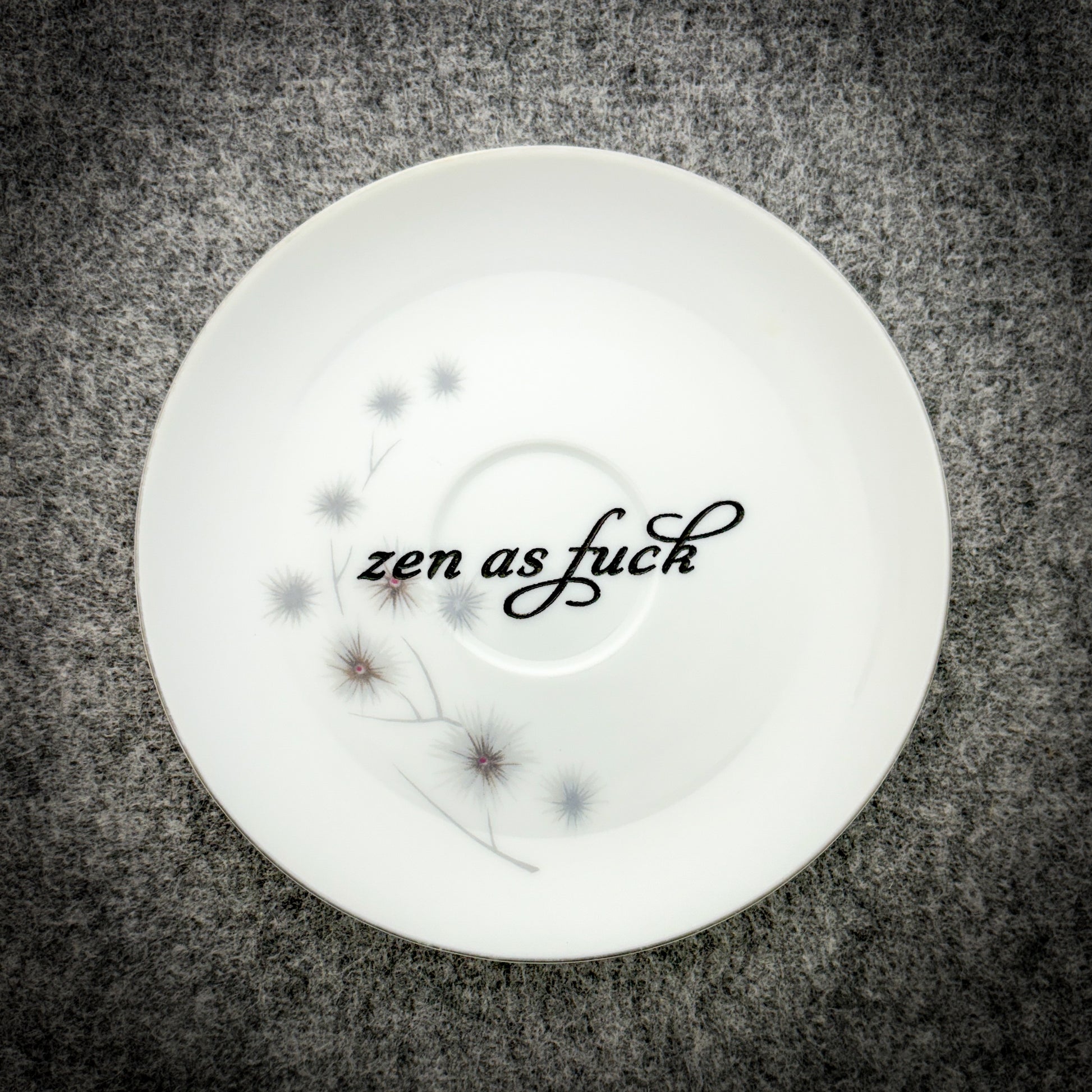 This is a used plate we’ve rescued, rehabbed, and reimagined into fabulous wall-worthy art for your home. It’s here to say what you’re thinking, without you having to say it out loud.